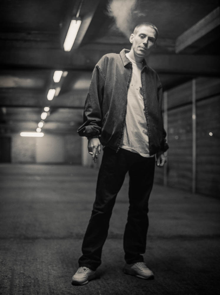 This image of Adam F was shot very late at night shoot with a tight turnaround on the images. I used Polapan 35mm film which was an instant B&W transparency film. It looked great but was an absolute nightmare to work with as it scratched and marked incredibly easily after processing, then needed to be placed in glass slide mounts to make it safe….. I liked how it messed up it could looked when it went a bit wrong but most importantly I had images almost straight away.