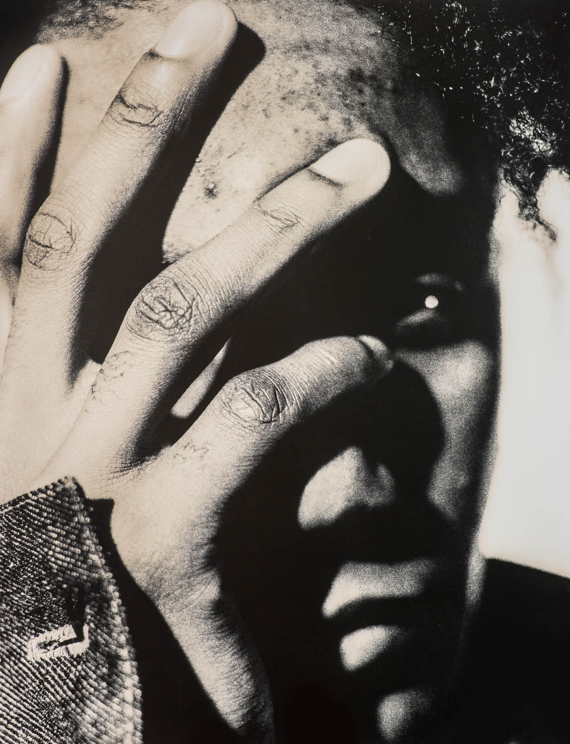 When I photographed him, he asked me to make him look as unrecognizable as possible. So I taped four Polaroid 55 negatives together, managed to get them to fit in the enlarger head, and developed using a sponge to get this effect.